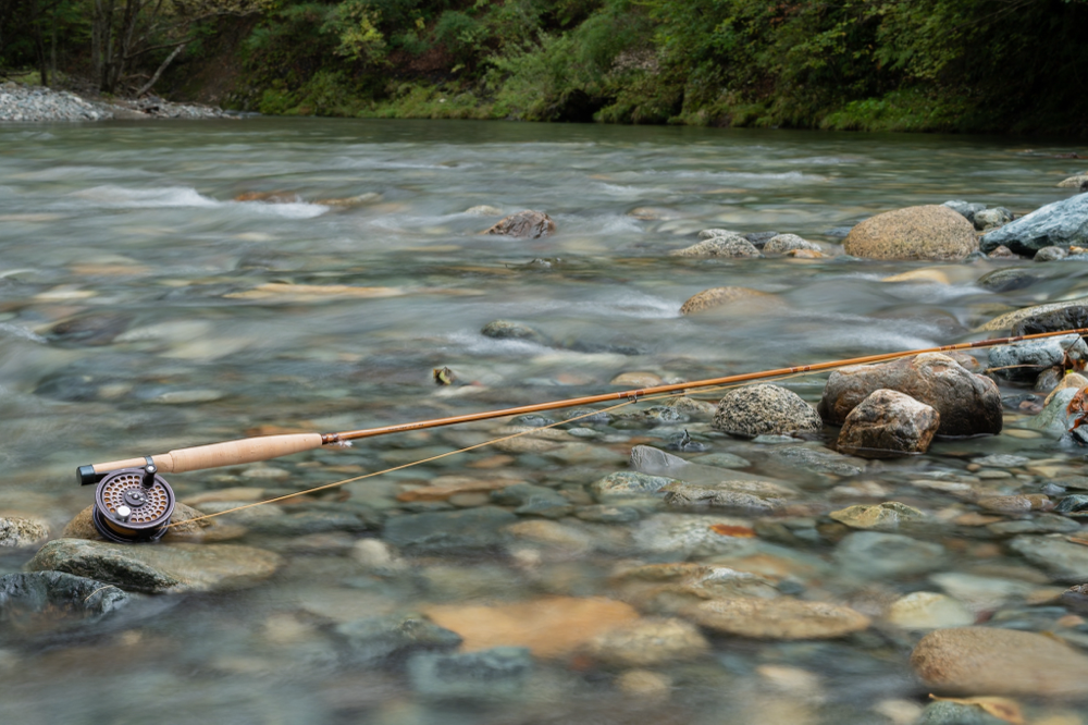 自社製造の軽量グラスフェルールを採用した、2ピースのバンブーロッド。ミディアム・アクションとスウェルバットの組み合わせで、渓流でのテンポの良い釣り上がりから、ふと目に入る少し離れたライズまで幅広く対応します。また、トルクフルなファイトにもバットがしっかりと粘るので、イワナやヤマメだけでなくニジマスとも、安定感のあるやり取りが可能です。